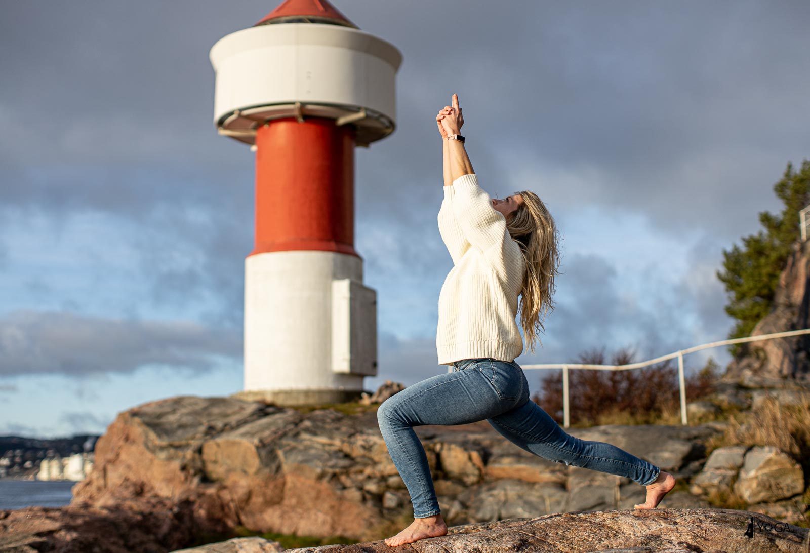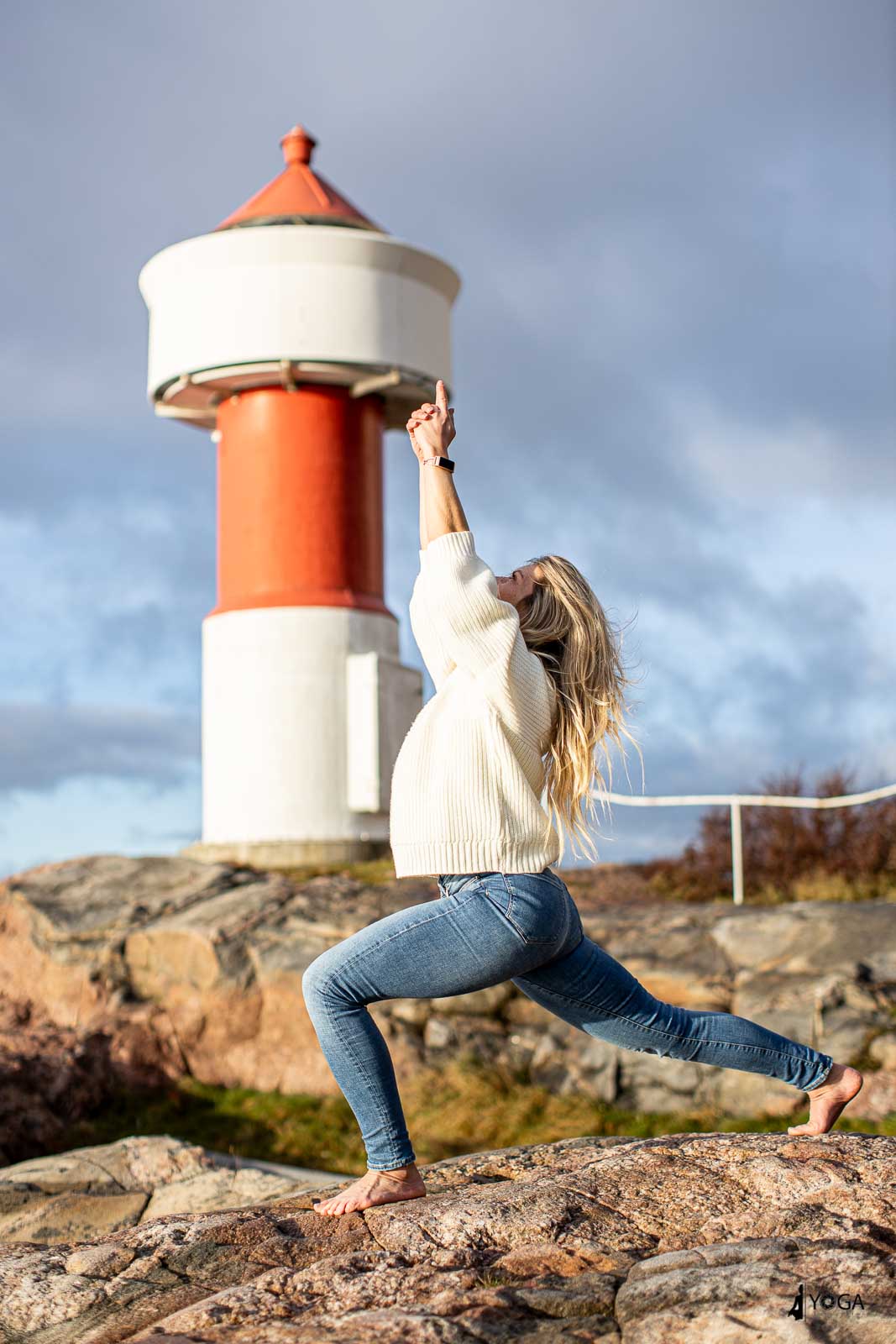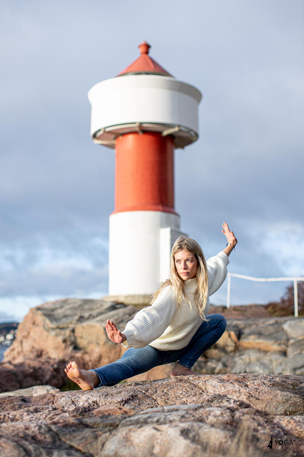 Silje er en yogainstruktør i Egersund og var på besøk til Kristiansand i dag. Da tok vi noen yogafoto på Odderøya fyr. Her er noen foto av Silje i yogastillinger i Kristiansand.