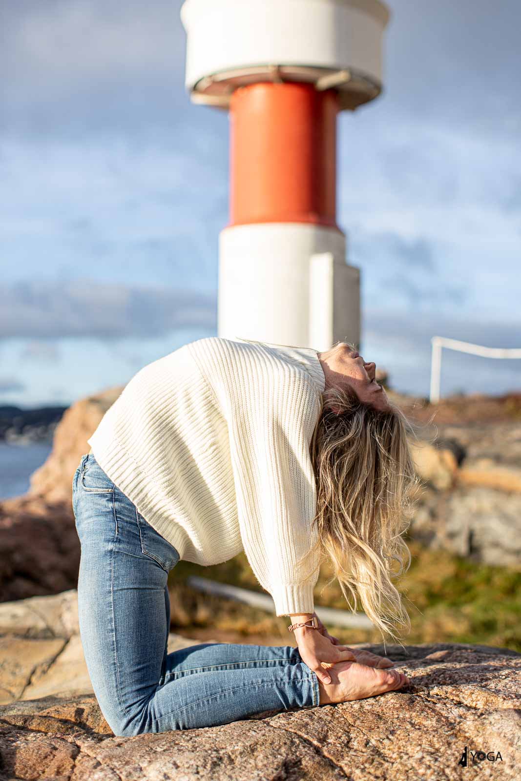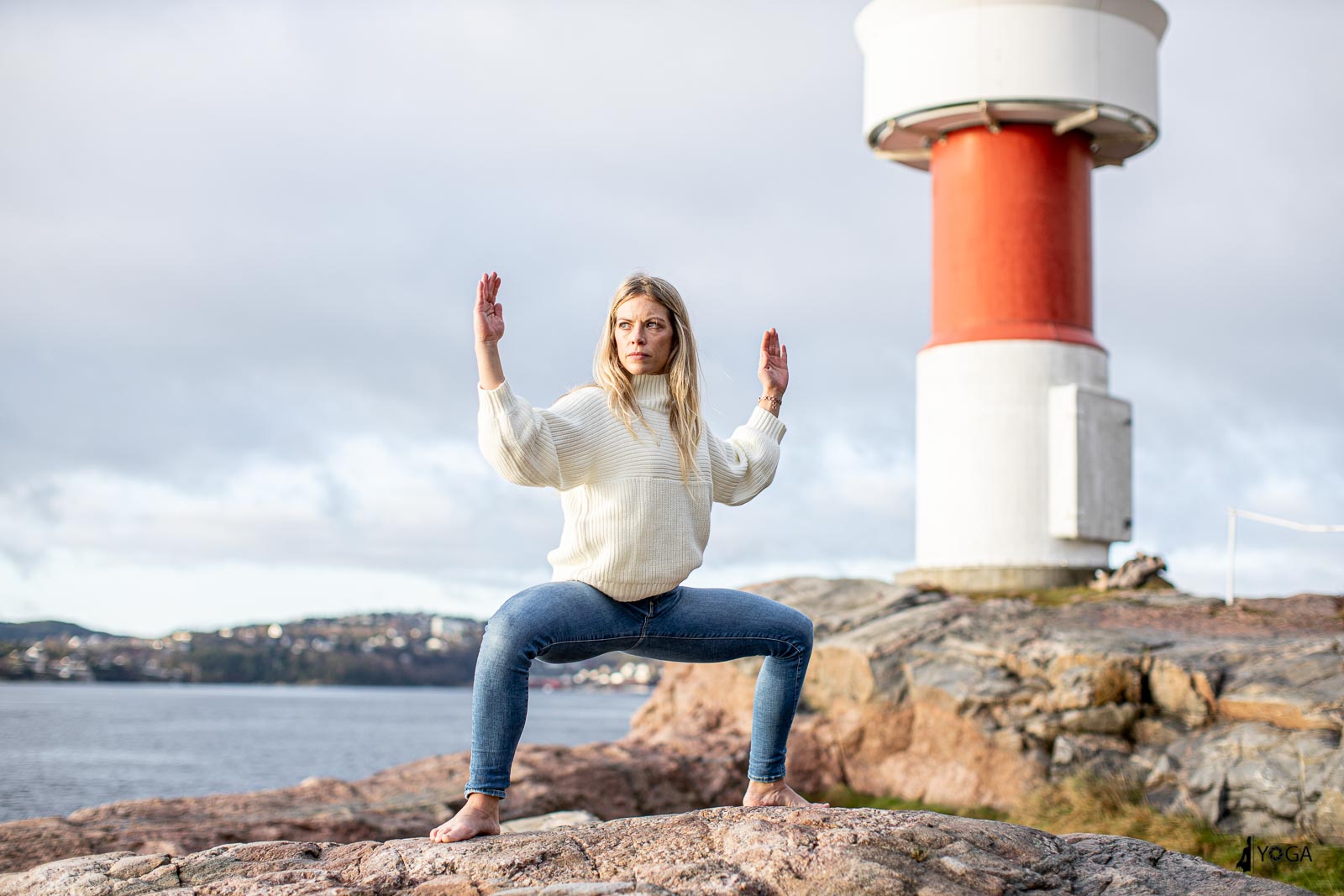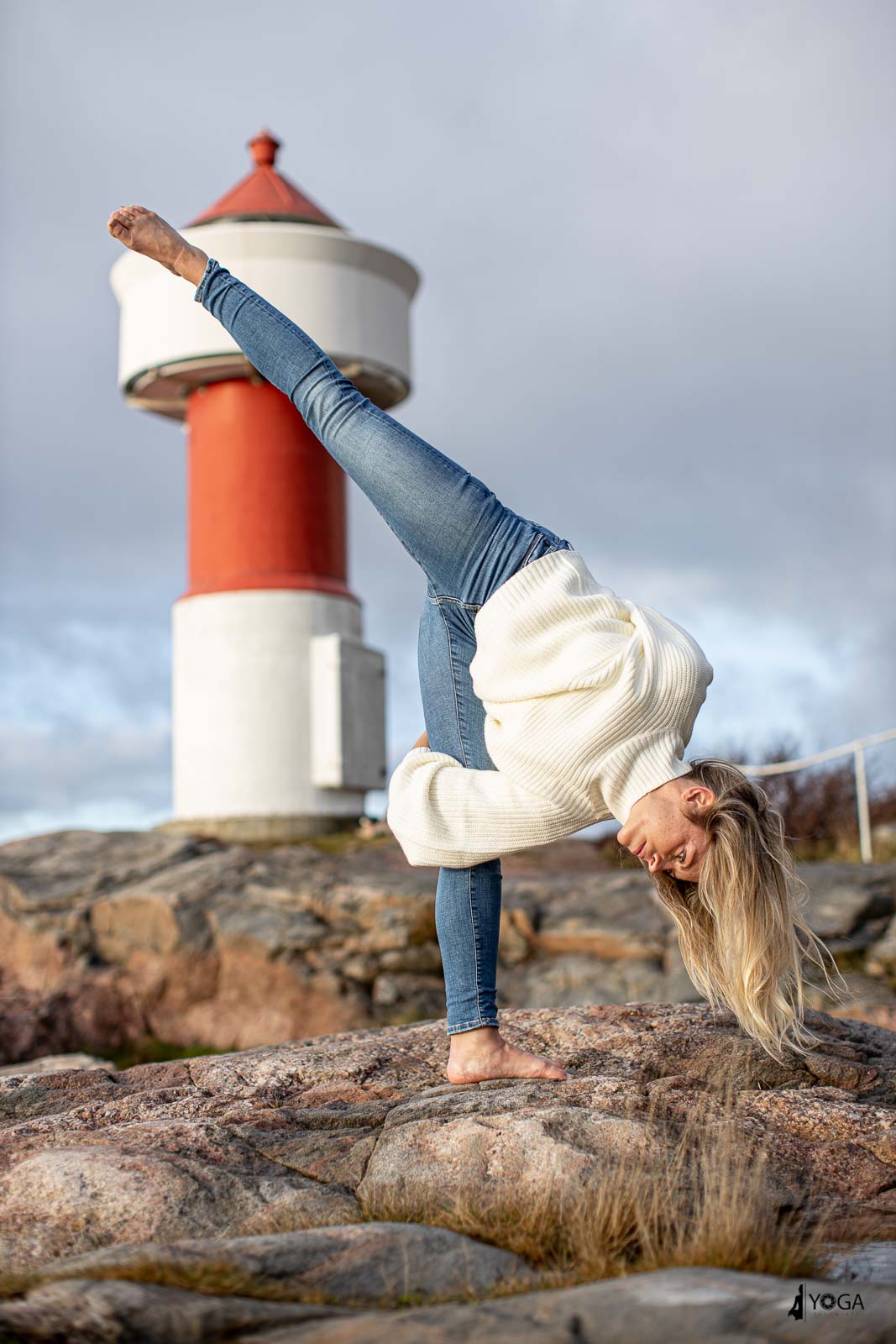 Silje er en yogainstruktør i Egersund og var på besøk til Kristiansand i dag. Da tok vi noen yogafoto på Odderøya fyr. Her er noen foto av Silje i yogastillinger i Kristiansand.